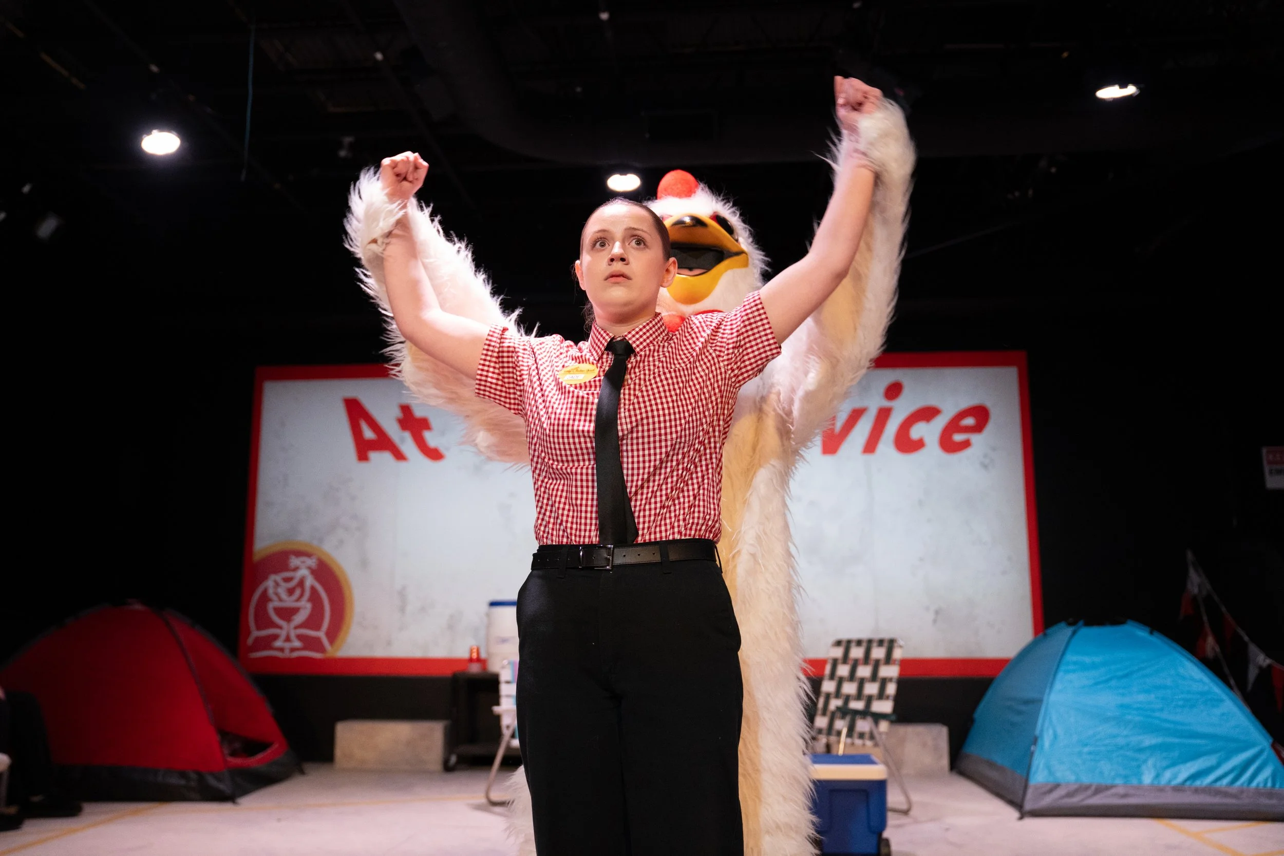 On the eve of a highly anticipated grand opening of a beloved yet politically controversial fast-food empire, one hundred fervent devotees gather in the parking lot for an overnight campout to earn a year of free large combos. As the night unfolds, it’s clear there’s a fox in the chicken coop. Jade, the newly appointed store manager, must find the source of anarchy before the flock devolves into utter chaos. A play that invites audiences to uncover what’s really in the secret sauce of devotion.